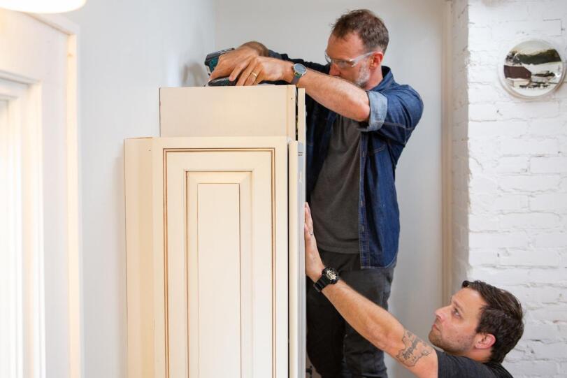 و ابتدا کابینت‌های زمینی، بعد کابینت‌های دیواری، سپس نصب درب های کابینت آشپزخانه و درنهایت روکش کابینت‌ها سرجای‌شان قرار می‌گیرند.